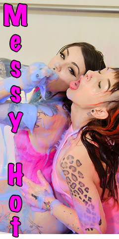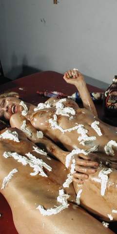 VioletWorld rolled around with Stacey on a tarp covered with custard